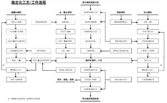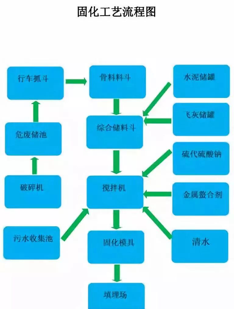 稳定化/固化处理车间具有破碎和固化两项功能。根据废物性质的不同分别采取水泥稳定化/固化、石灰(粉煤灰)稳定化/固化和有机螯合剂或硫化钠、硫代硫酸钠稳定化等方法处理,经稳定化/固化处理后的半凝固体用模具收集、养护,在检验固化体浸出液指标符合安全填埋标准后,用汽车运至安全填埋场作业区进行堆砌、覆盖。